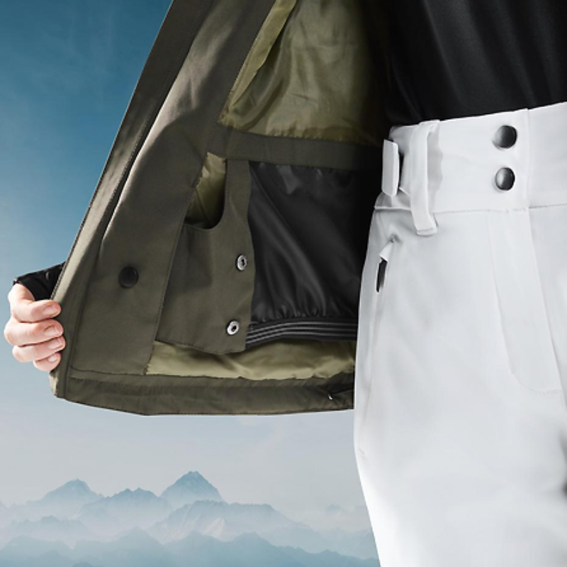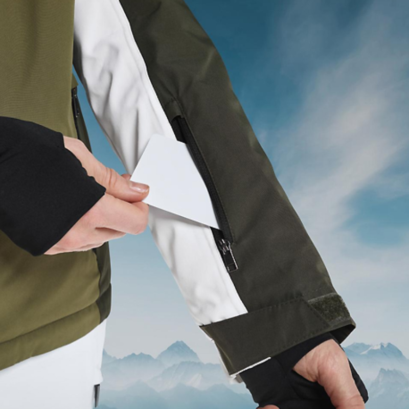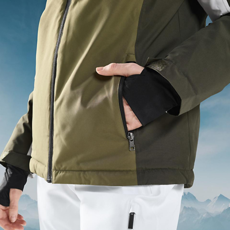 - دارای زیپ تمام قد ضد آب با محافظ چانه برای تهویه و کلاه به همراه بند کشی قابل تنظیم